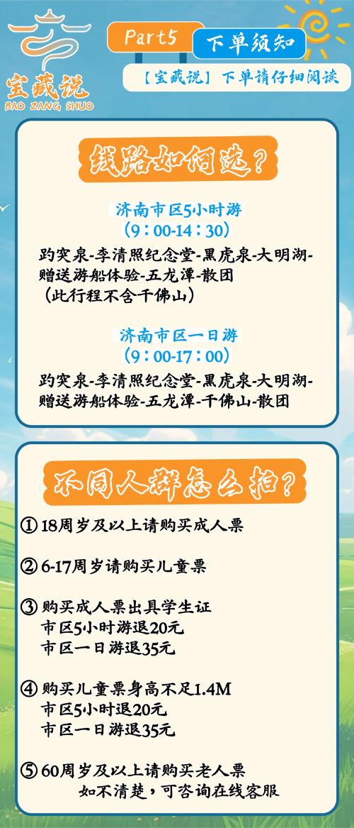⑤购儿童票身高不足1.4M退20元(市区5小时游退20元,一日游退35元)