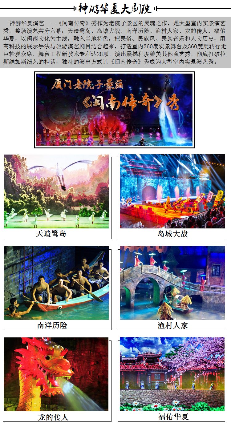 厦门老院子景区+华夏演艺《闽南传奇》秀一日游【厦门岛内上门接送/纯玩无购物】