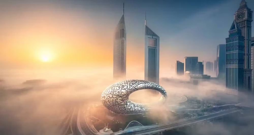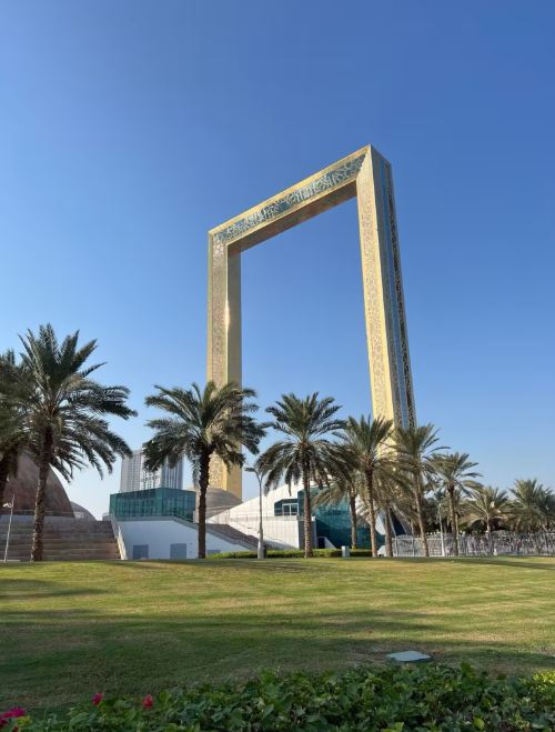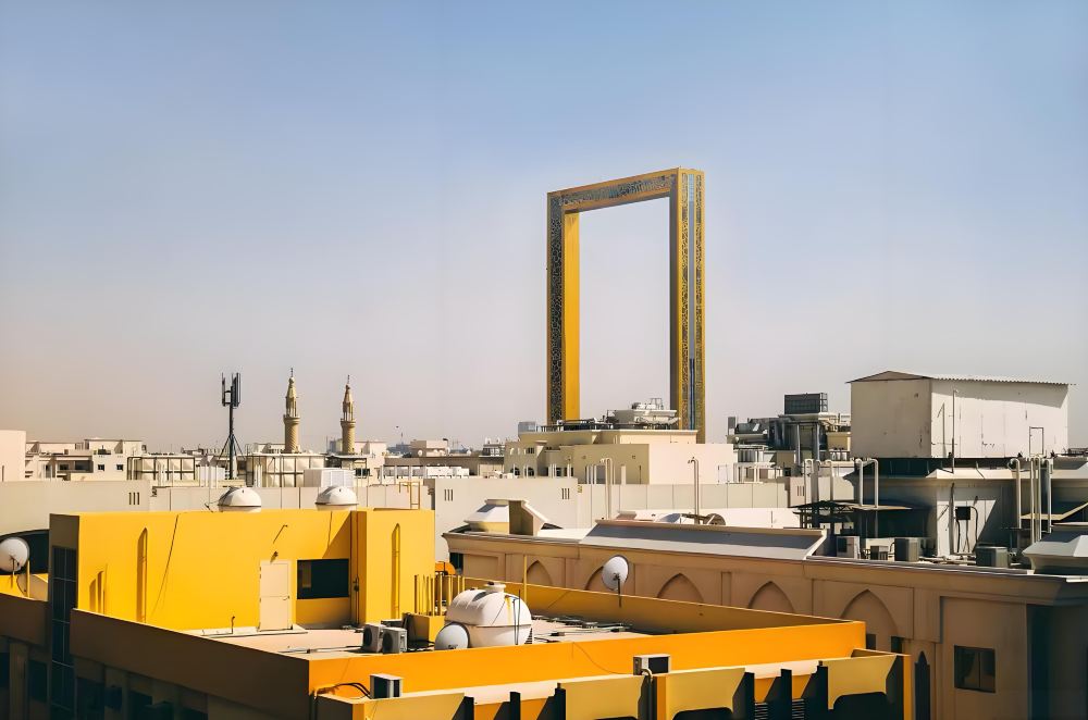 ▲ 迪拜相框:高150米的镀金建筑,形似巨大相框,北侧俯瞰老城区风貌,南侧眺望现代天际线,顶部玻璃走道是网红打卡点,底层博物馆展示迪拜发展历程