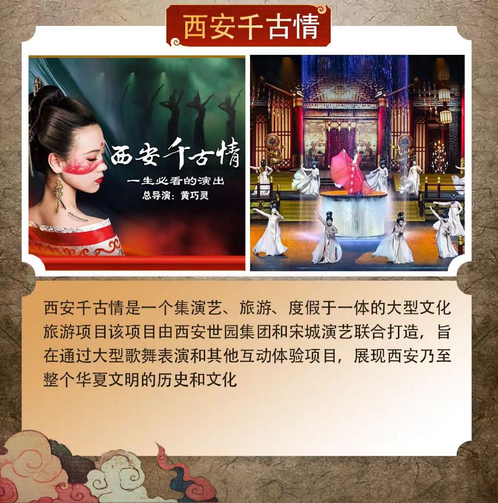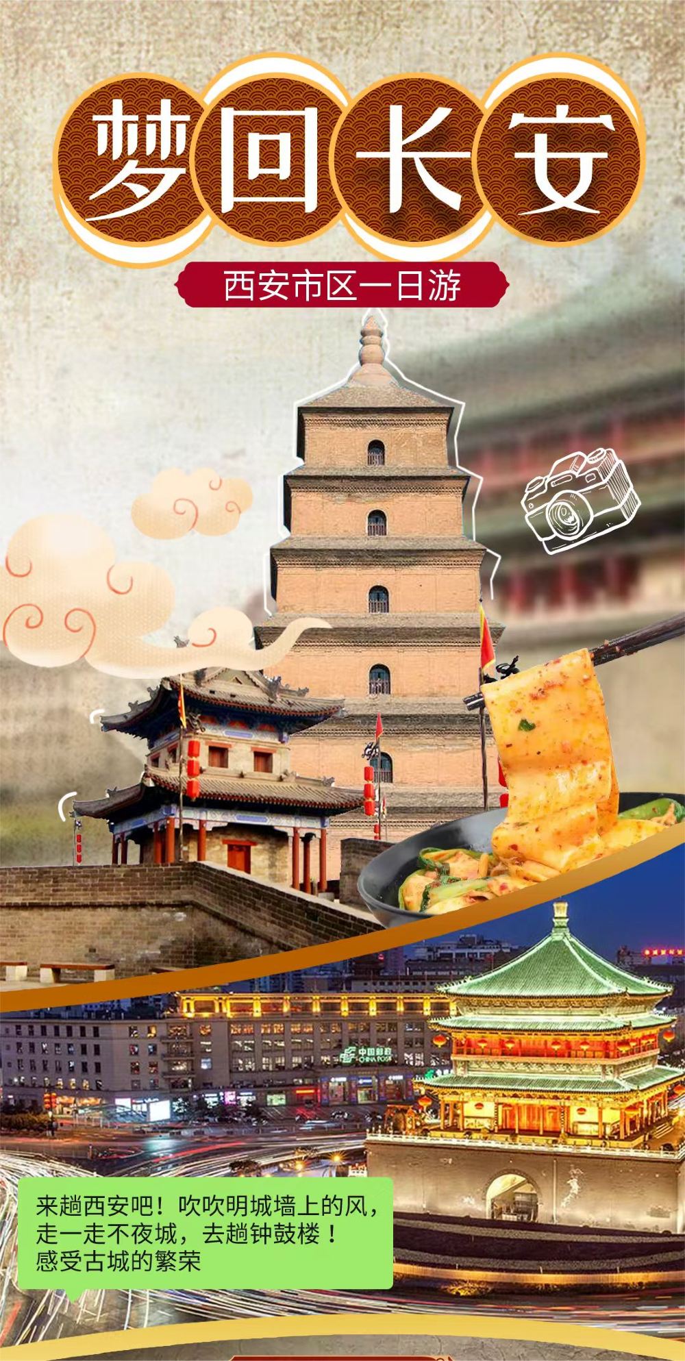 西安市三环以内酒店接送,出发时间可自由选择以下(8:30点/9点/10点)-钟鼓楼广场-城墙-午餐(城墙附近美食街或者让司机师傅推荐当地美食)用餐1小时左右)-千古情(千古情常规场次15:30场次,旅游旺季会根据当天游客量加减场次,因次场次时间可能会有小变动,具体以当天出票为准)-大雁塔音乐喷泉-大唐不夜城-酒店