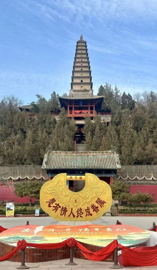 ▲ 普救寺是西厢记的发生地,见证了崔莺莺和张生的爱情。崔莺莺一家寄居的"梨花深院",白马解围之后张生移居的"书斋院"穿插其间。寺后是一地势高低起伏,形成活泼的园林花园。园内叠石假山悬险如削,莺语双亭飞檐翘角。荷花池塘上横架曲径鹊桥,亭桥相接,湖山相衔。莺莺的"拜月台"掩映在青松翠柏,千竿修竹之中。由于《西厢记》的问世,使得这个"普天下佛寺无过"的普救寺名声大噪,寺内的舍利塔也被更名为"莺莺塔"而闻名遐迩。待月西厢下,迎风半户开。隔墙花影动,疑是玉来人。