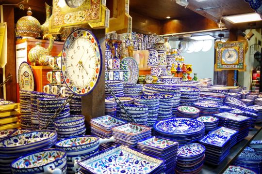 ▲ 棕榈叶遮阳下的复古市集,木质招牌在微风中轻晃,空气中弥漫着阿拉伯香水与咖啡香气,拱桥横跨运河,游船载着欢声笑语穿梭。