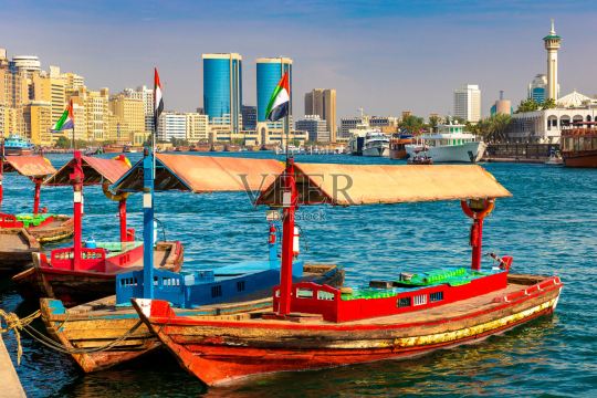 ▲ 传统 "水上的士" 如移动凉亭,10 米长的木船在波光粼粼的河面上划出涟漪,两岸一边是摩天大楼,一边是古老风塔,10 分钟航程浓缩迪拜千年变迁。
