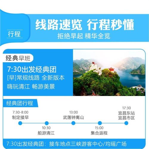 宜昌清江画廊一日游【圣境游线/两个班次可选/纯玩无购物】【1、早班08:00,晚班10:00,两个班次可选,全程纯玩无购物!】