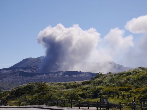 ▲ [阿苏中岳火山] 游客可沿火山道路前往观景点,近距离感受地壳的震动与火山的壮观气势。