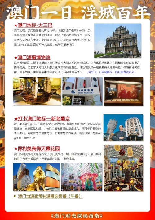 澳门一日游跟团|赠网卡澳门旅游美高梅葡京巴黎塔威尼斯大三巴等【[线路丰富]中西合璧的世遗建筑|多种玩法|品质加持|感受当地不一样的多元魅力】