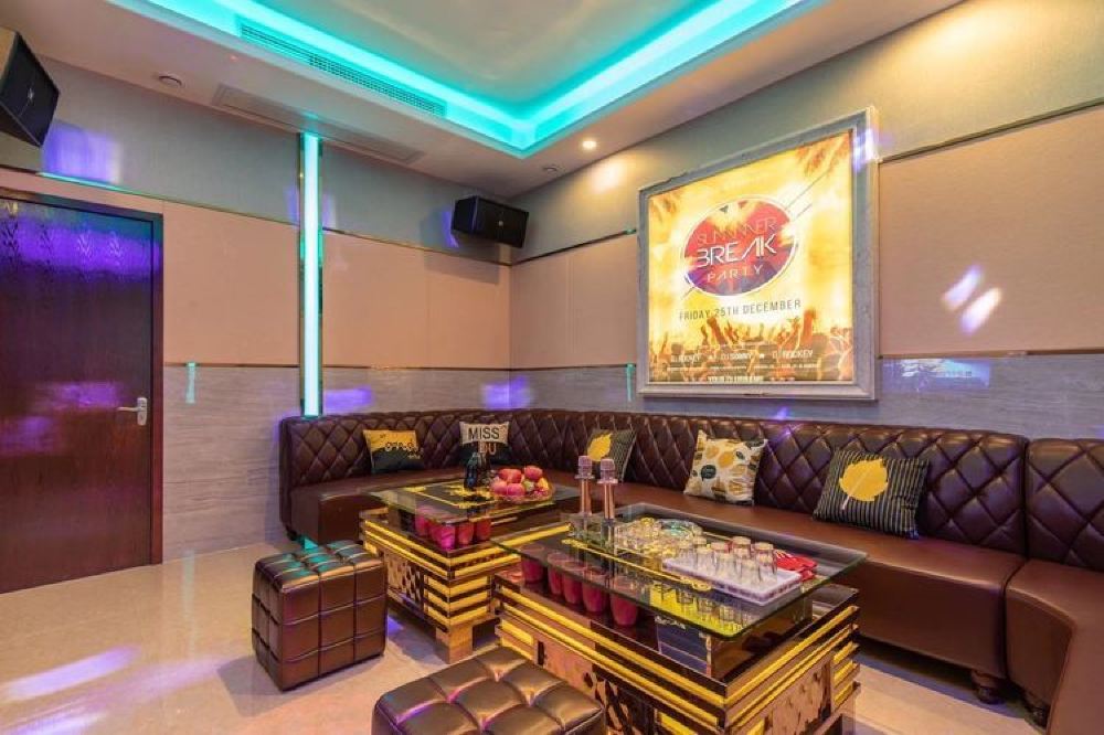 B101房:1.2米两张(花园泡池+公共卫浴);独立专业豪华KTV房;