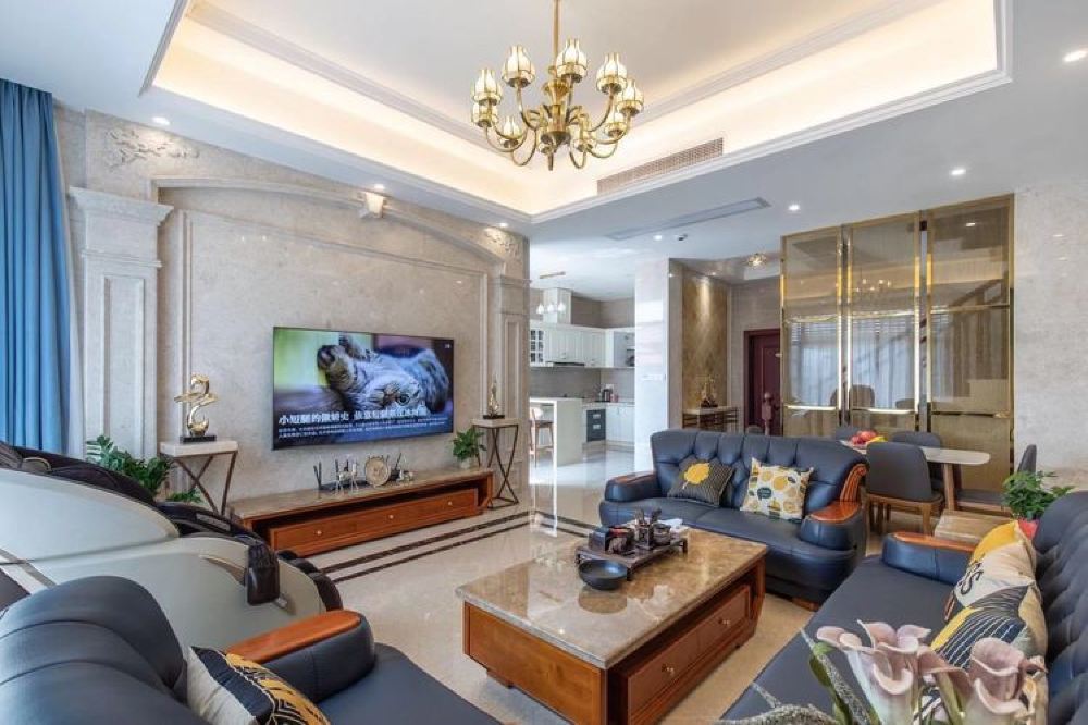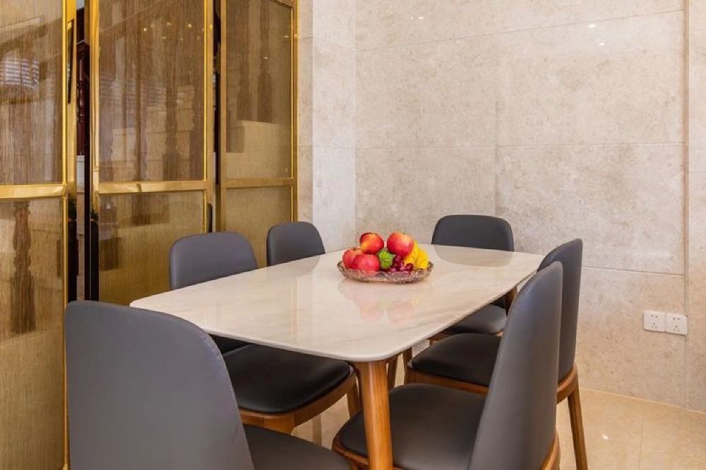 客厅配备全身全自动按摩椅,让你在休息中全身放松,精美茶具,