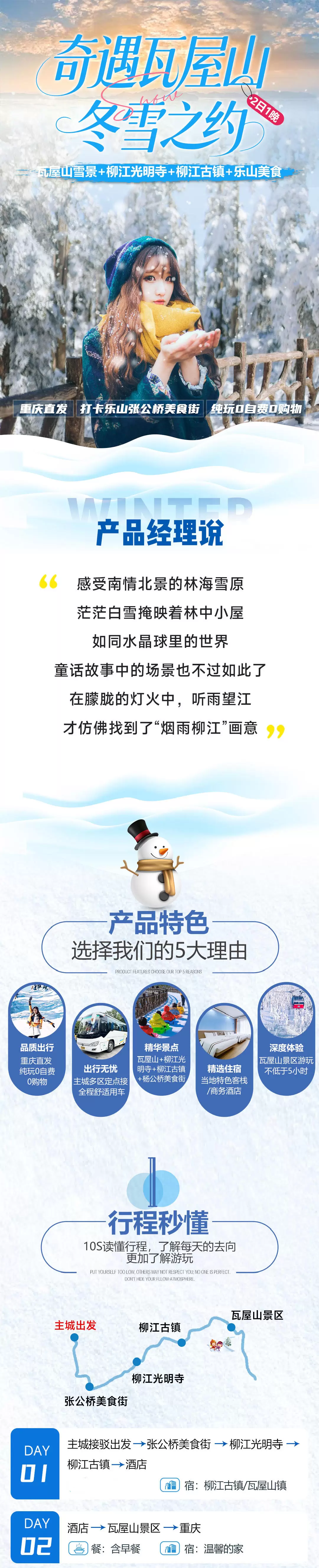 【重庆双汽往返】眉山瓦屋山风景区+柳江古镇旅游风景区+张公桥美食街二日游