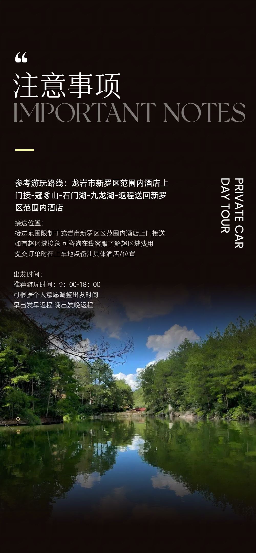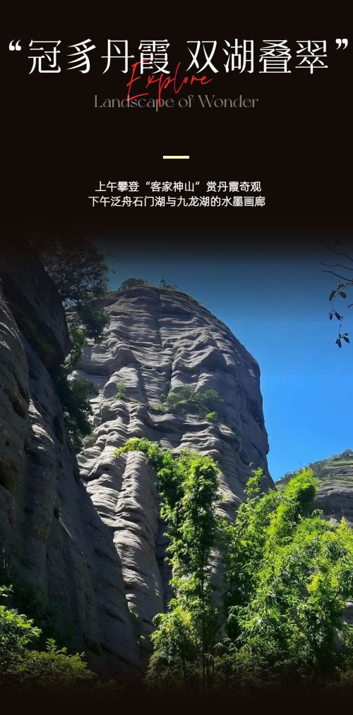 龙岩出发连城包车9小时一日游|打卡冠豸山景区+石门湖+九龙湖【专车无缝衔接,将丹霞奇观、湖光山色与客家文化一网打尽】