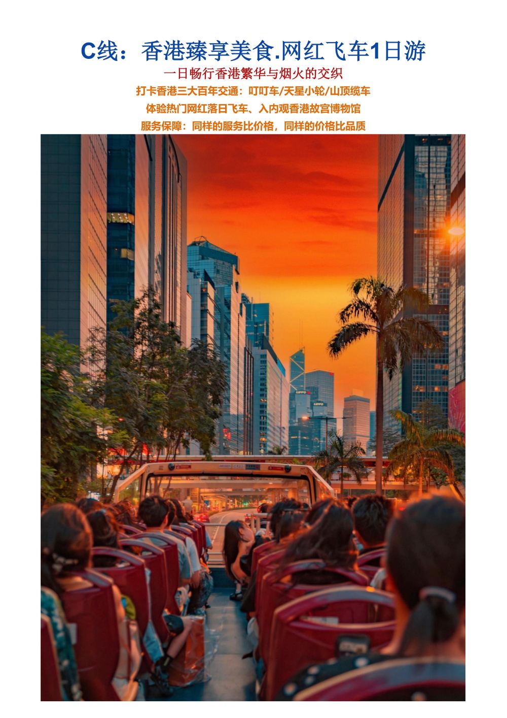 特别说明:散拼团由各城市出发抵达香港,接驳段并非全程20人,均以抵达第一个景点后换车走行程为20人小团,不便之处,敬请谅解。