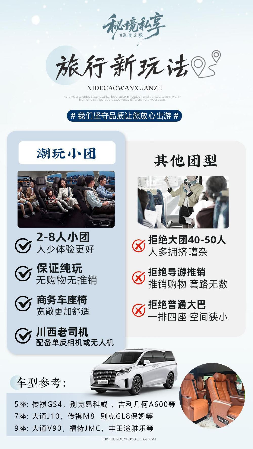5.舒适大巴一排4座位(2+2),保姆大巴一排3座位(1+2)