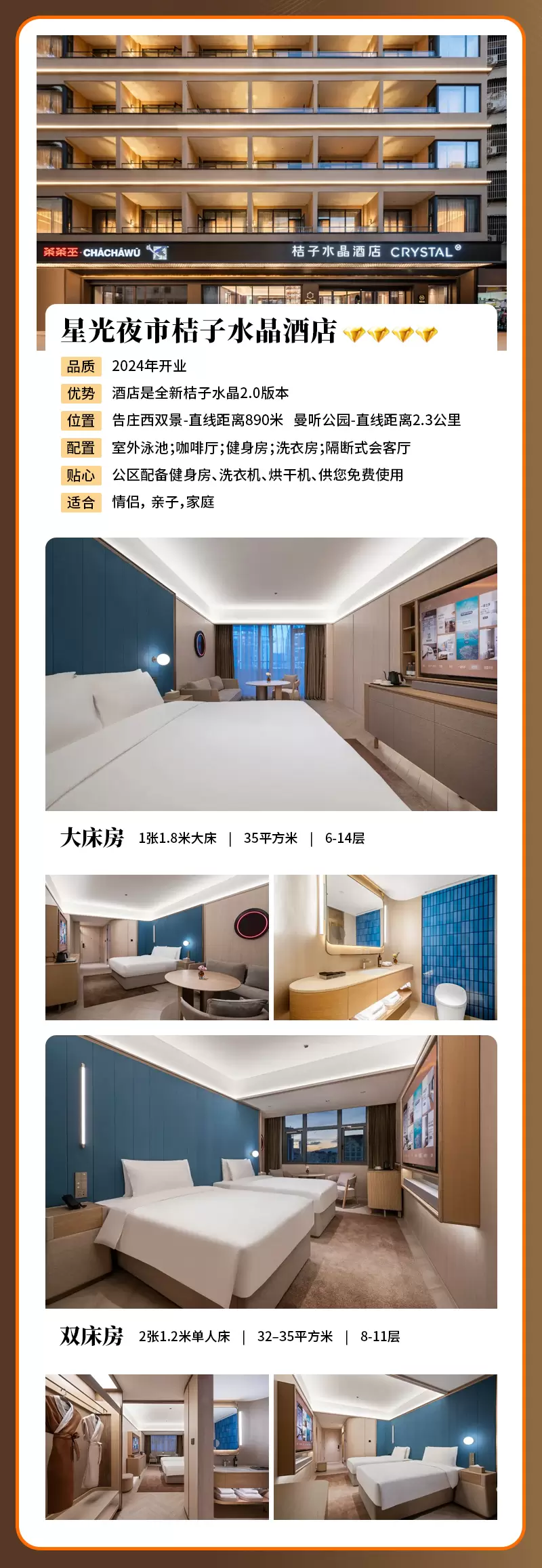 【酒店套餐】3天2晚版纳告庄附近桔子水晶酒店+双人傣族园门票+酒店早餐