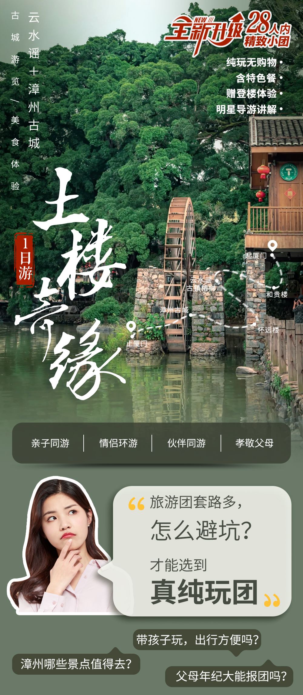 福建土楼+南靖云水谣+漳州古城一日游【多团型可选|私家团】【【28人/15人可选】厦门出发漳州精品团·纯玩·无购物不喝茶·全程品质保障·深度体验更舒心!】