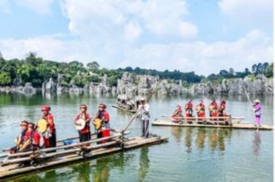 ▲ 民族文化:这里是阿诗玛的故乡,撒尼人创造了丰富的民族文化,彝文记录的叙事长诗《阿诗玛》被译成20多种文字发行,撒尼歌曲《远方的客人请您留下来》也名扬天下。每年农历六月二十四的彝族火把节,有摔跤、斗牛、火把狂欢等活动,被誉为“东方狂欢节