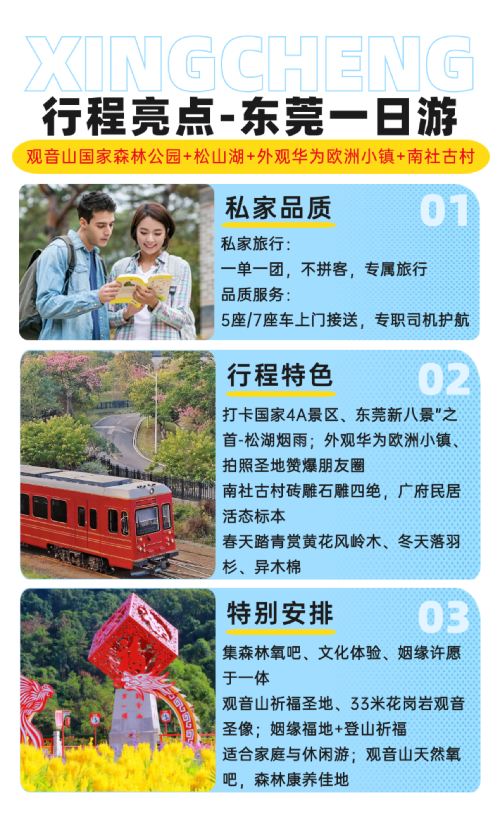 东莞观音山+松山湖+南社古村一日【包车游上门接送+含门票】【私家旅行:一单一团,不拼客,专属旅行;品质服务:5车上门接送,专职司机护航】