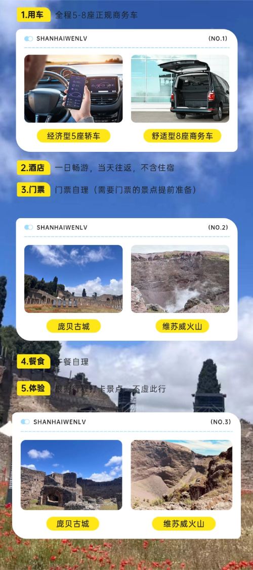 餐食自理,包含午餐+晚餐时间,若想景点多游玩,可压缩餐食时间。本次旅行不包含所有门票和预约,如有需求,自行预约购买门票,具体包车或者拼团,详细咨询客服。