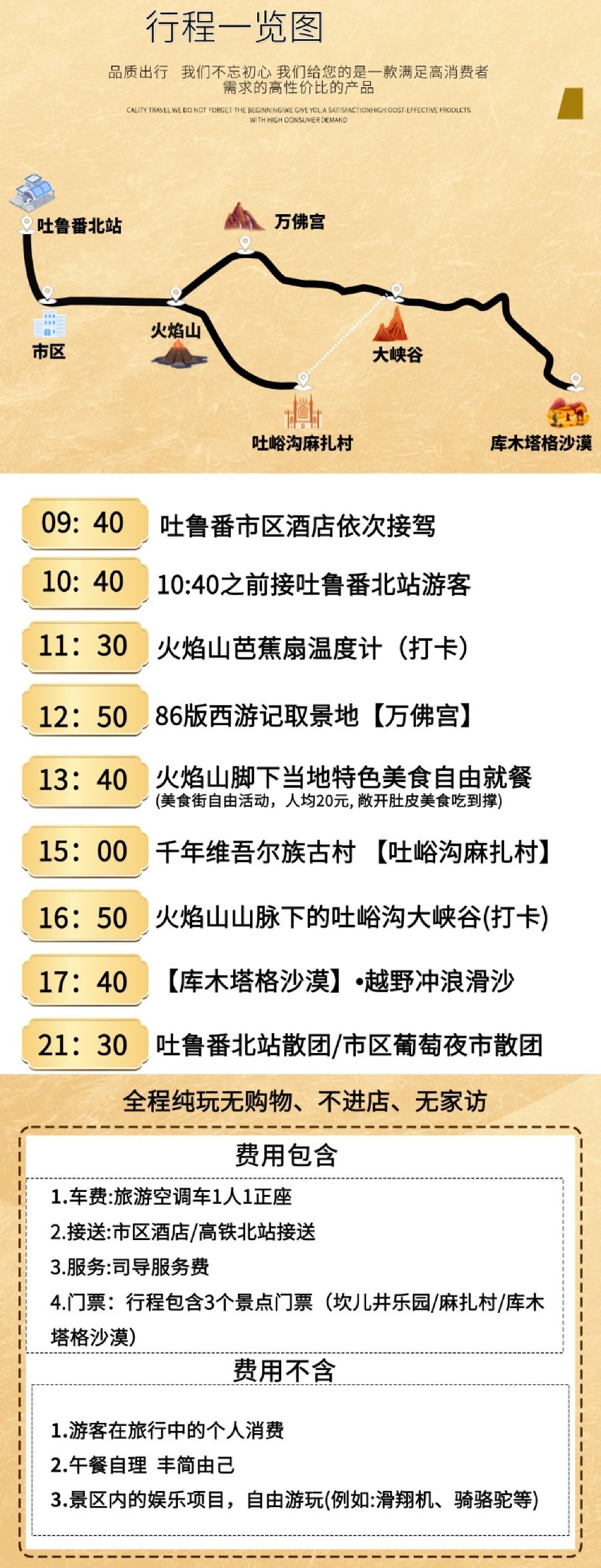 火焰山温度计打卡+万佛宫+麻扎村+大峡谷+库木塔格沙漠一日游【[多重玩法]多种团形,上门接减少等待时间,热门景点,体验火焰山美食。】