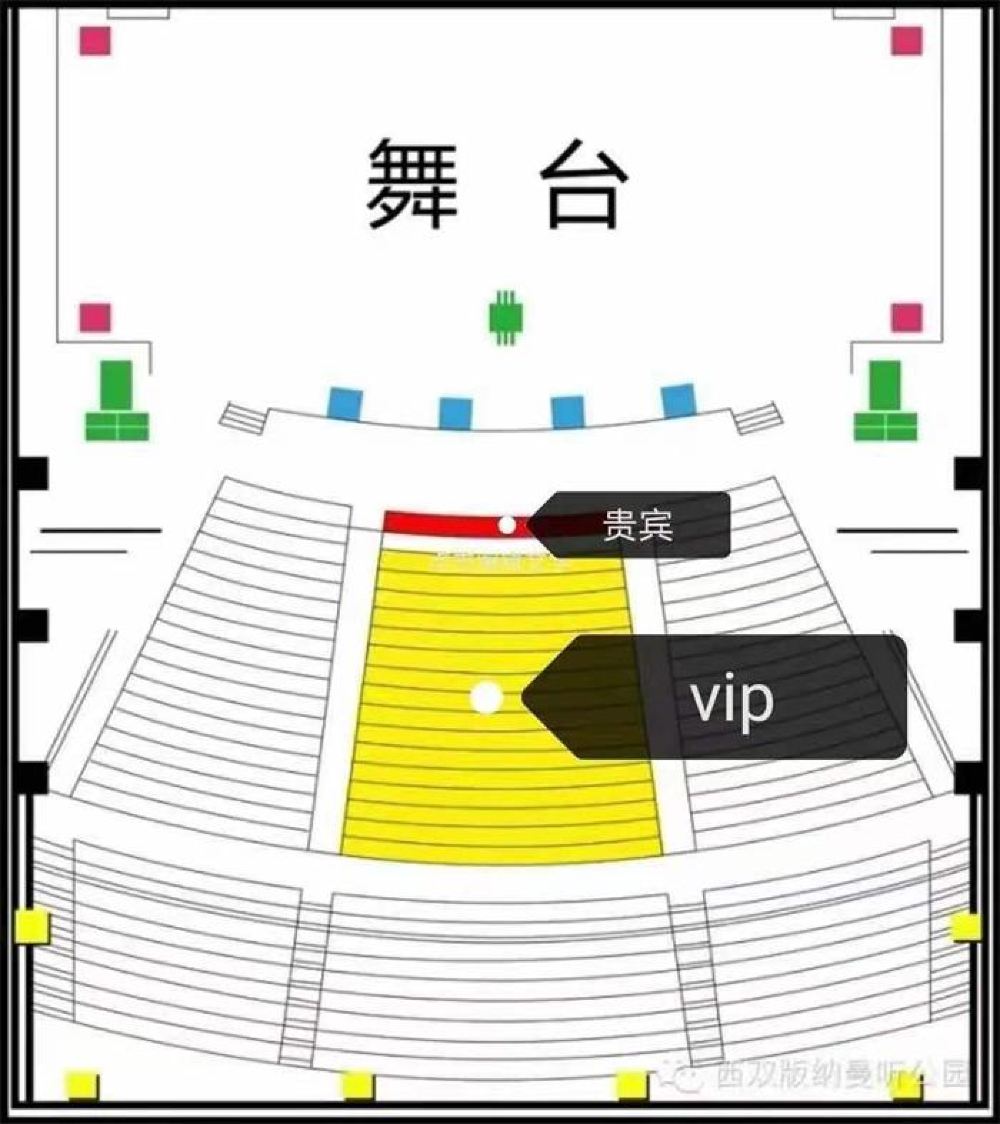 曼听公园篝火晚会VIP票:【不需要排队入场,有VIP通道】含自助餐,民族特色表演座位(对号入座),水灯祈福,篝火狂欢(黄色区域为VIP座位)