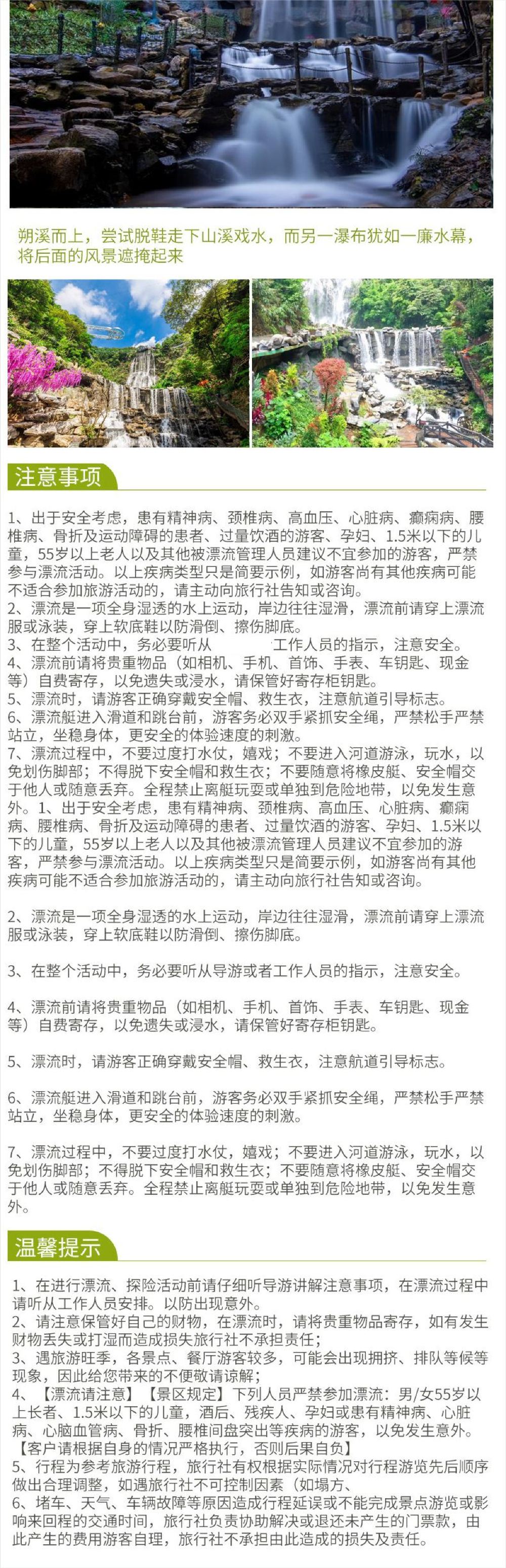 2、云天波霸和大瀑布手抱婴儿,孕妇以及70岁以上不能参加,1.2米以下免票,1.2米以上大小同价