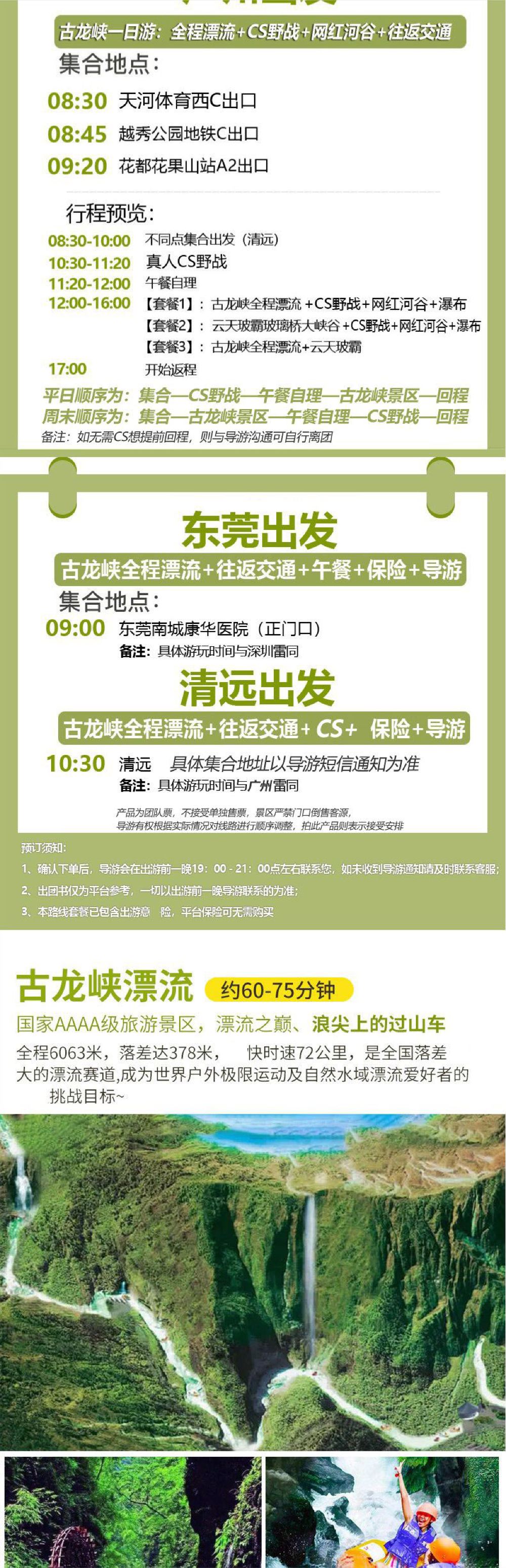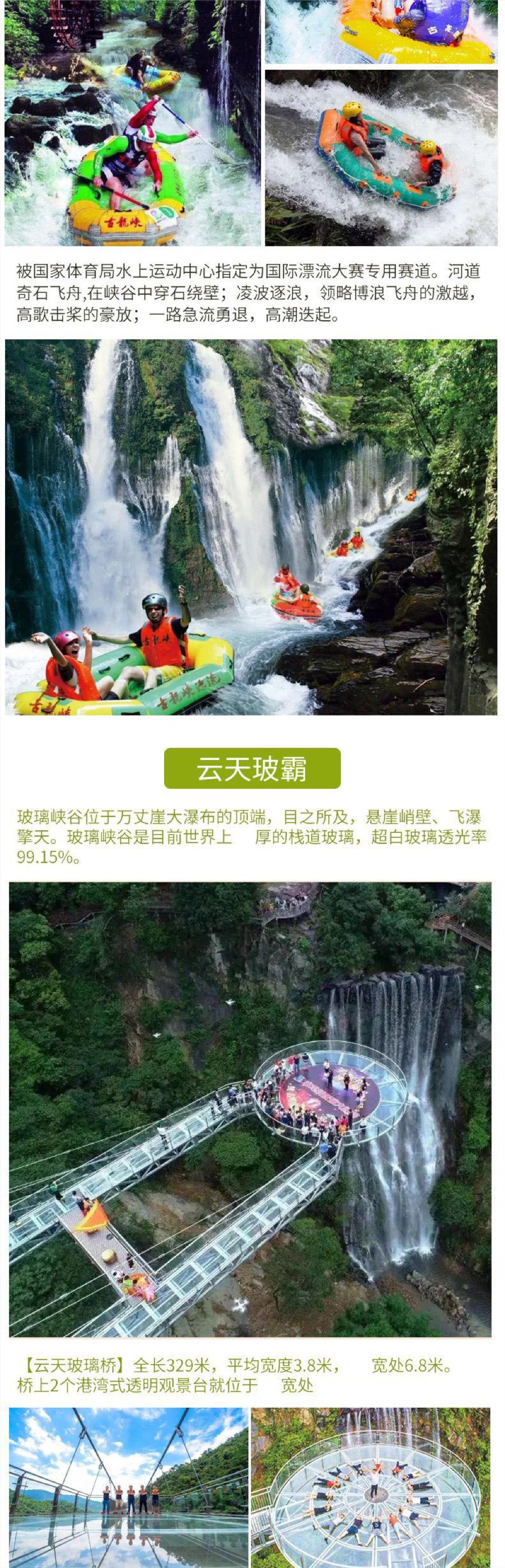 套餐一:古龙峡漂流 套餐二:云天玻霸 套餐三:古龙峡全程漂+云天玻霸