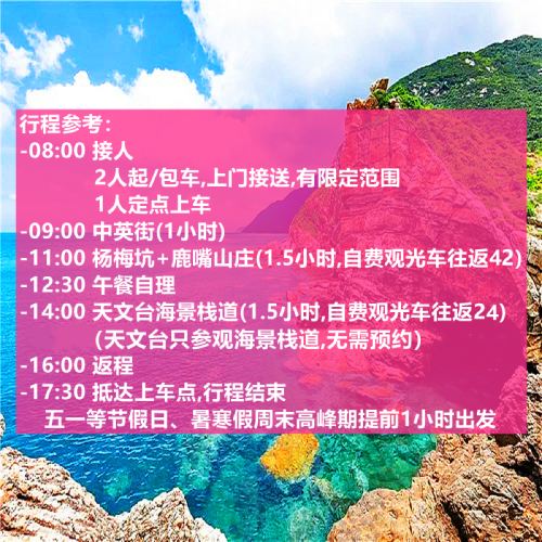 行程:接人-中英街-杨梅坑+鹿嘴山庄+天文台海景栈道-返回