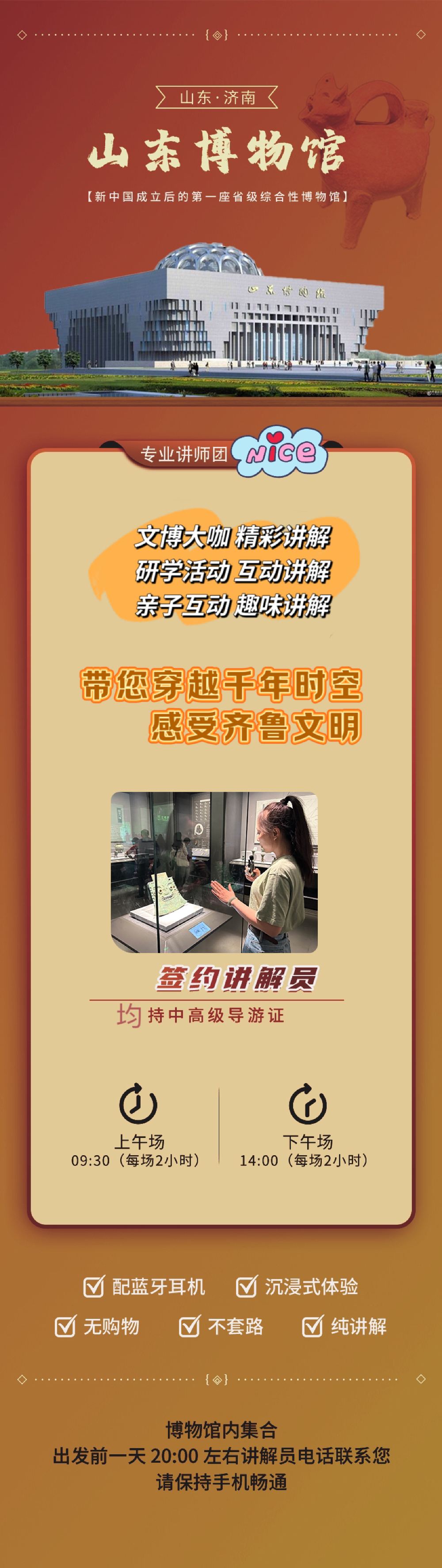 •本产品为山东博物馆精讲2小时拼团,我司讲解员均为中高级讲师,讲解水平过硬,请放心下单