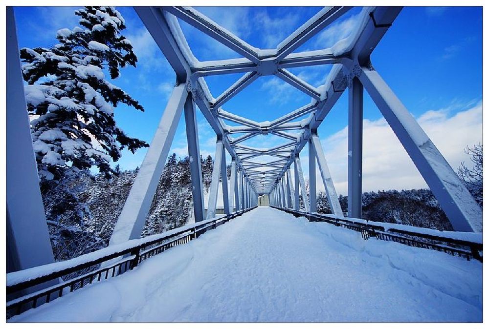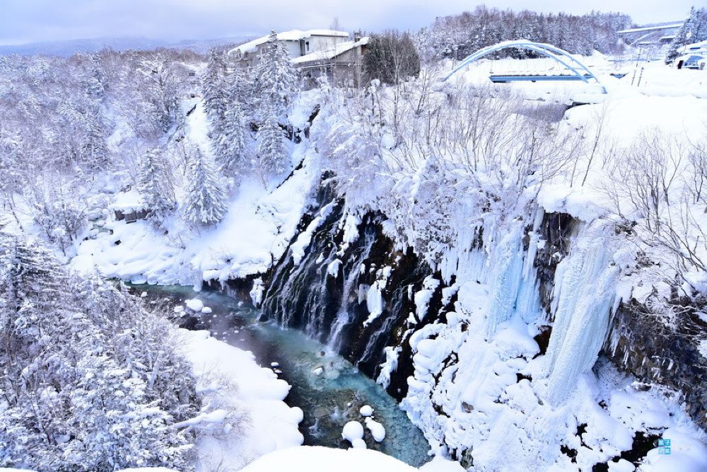 ▲ 白须瀑布从十胜岳山麓的地下涌泉中倾泻而下,水流穿过岩缝直接流入美瑛川,形成独特的蓝白交织景观。由于富含矿物质的泉水在阳光照射下呈现出梦幻般的蓝色河流,与瀑布的洁白水雾相映成趣,因此得名「白须瀑布」。