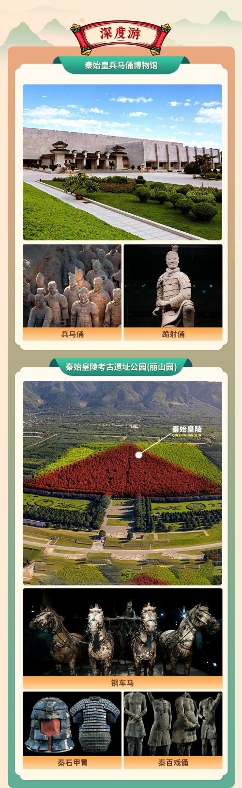 秦始皇帝陵博物院兵马俑【冰蛋团/芥末团】+丽山园一日游【[趣味讲解]可选冰蛋团/芥末团,为您深度讲解兵马俑景区,随车导游讲解丽山园,亲子出行收获满满。】