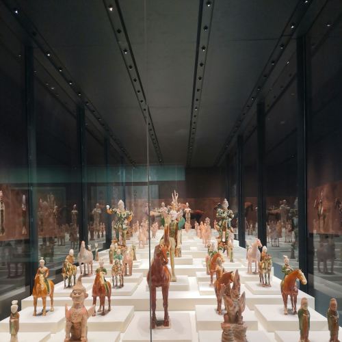 ▲ 唐三彩矩阵俑,是隋唐漕运繁华的微观注脚。文官肃穆、武士挺拔,衣袂间晕染的釉色,复刻着运河商贸滋养的市井烟火。它们曾伴随漕船往来南北,如今以阵列姿态,让千年前的漕运日常在展柜里 “活” 了起来。