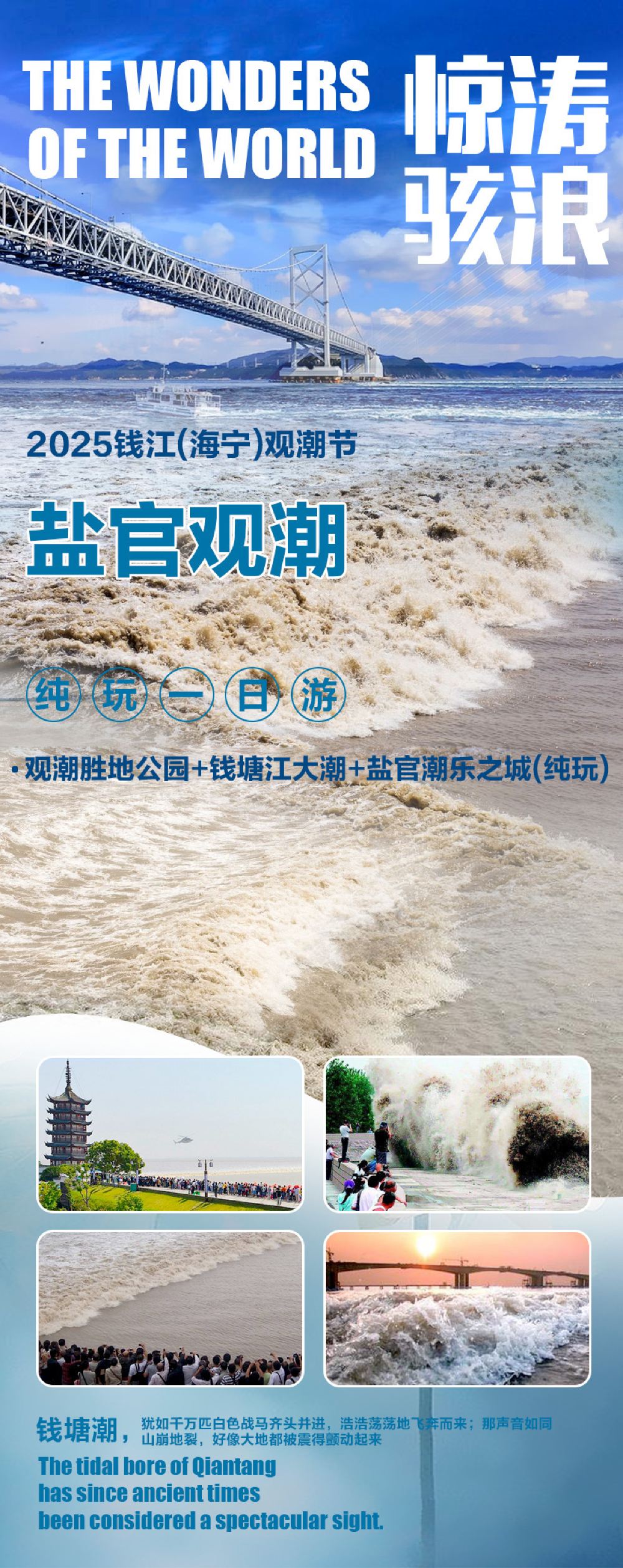 海宁盐官+潮乐之城+观潮胜地公园一日游【免预约·观钱塘江潮】【海宁盐官镇为观潮胜地,也被人们称为“海宁潮”】