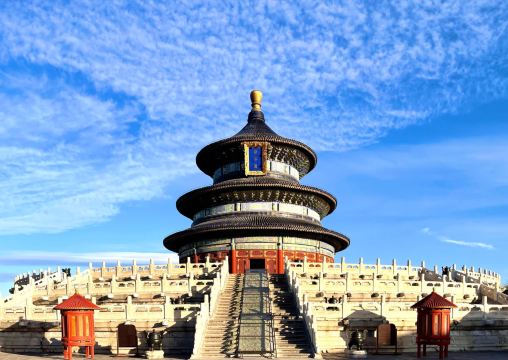 ▲ 天坛公园 • 位置:位于北京正阳门外东侧,东城区永定门内大街东侧。 • 面积与布局:总面积273公顷,坛域北圆南方,寓意“天圆地方”。四周环筑两道坛墙,分内外坛,主要建筑集中于内坛。 • 历史沿革:始建于明永乐十八年(1420年),初名“天地坛”,明嘉靖九年(1530年)改名“天坛”,清乾隆、光绪时曾重修改建。 天坛公园四季、白昼皆美。