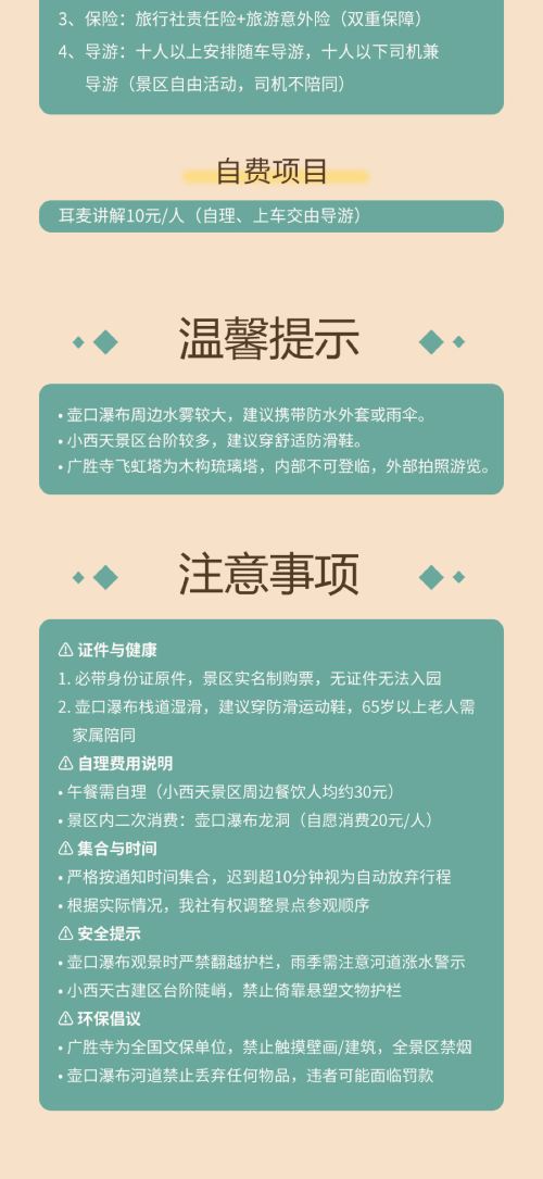2.当天出行人数不足10人不安排全程导游,只安排景区讲解;