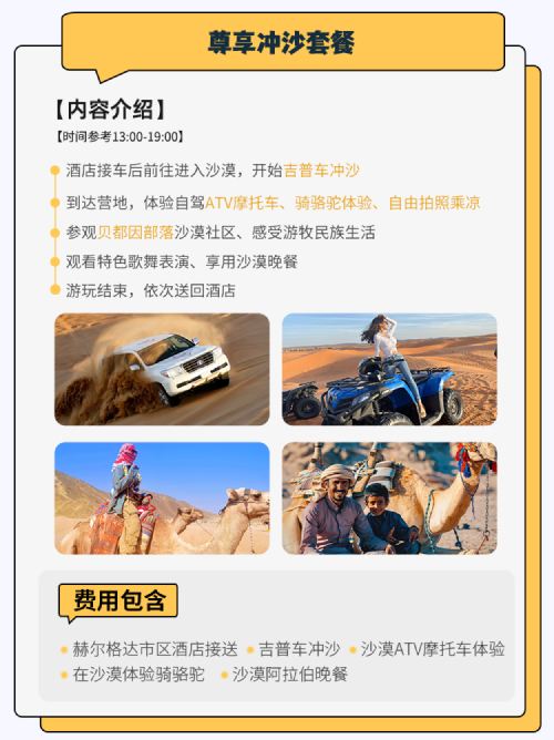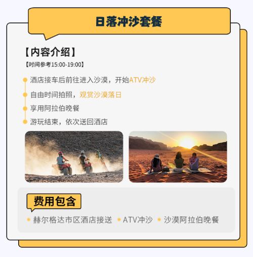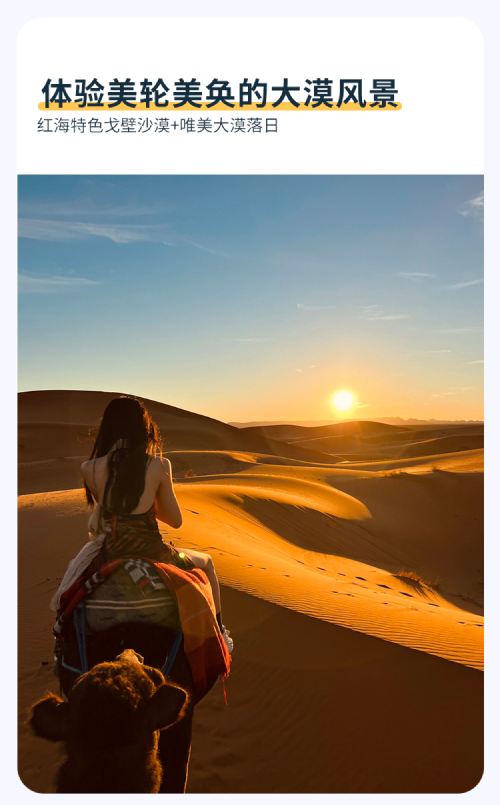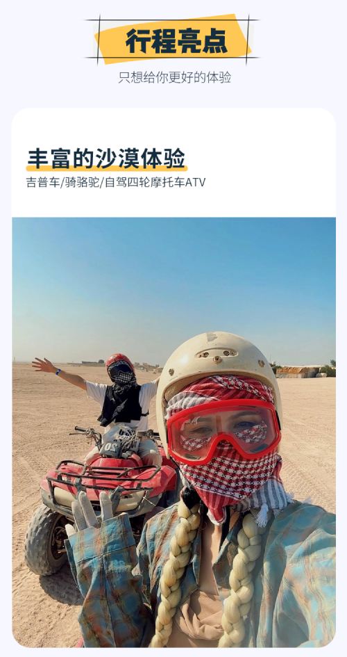 埃及红海沙漠营地冲沙游【日落/骑骆驼/贝都因部落+晚餐】【丰富的沙漠体验,吉普车/骑骆驼/自驾卡丁车/自驾四轮摩托车ATV,激情刺激】