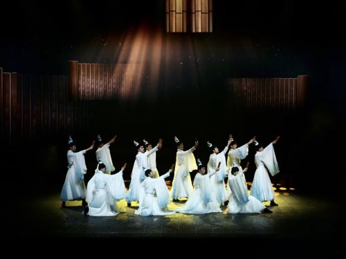 ▲ 舞台上方的木格窗棂漏下细碎的光影,仿佛是王羲之笔下 “曲水流觞” 的雅集重现,满是魏晋风骨的飘逸与洒脱
