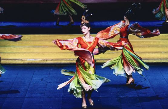 ▲ 红裙如燃烧的云霞,绿裾似舒展的荷叶,每一次水袖翻飞都带着盛唐的雍容气象,仿佛千年前的宫廷乐舞在此刻复活