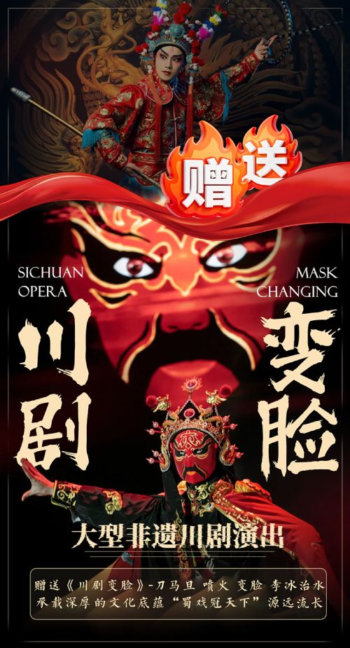 中午赠送表演刀马旦吐火 李冰治水 川剧变脸