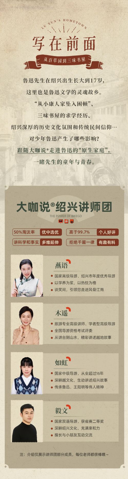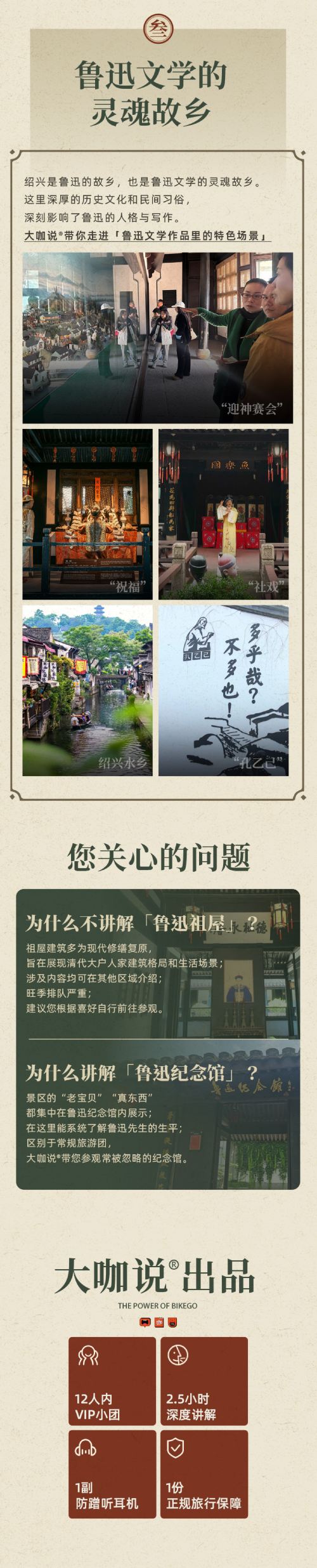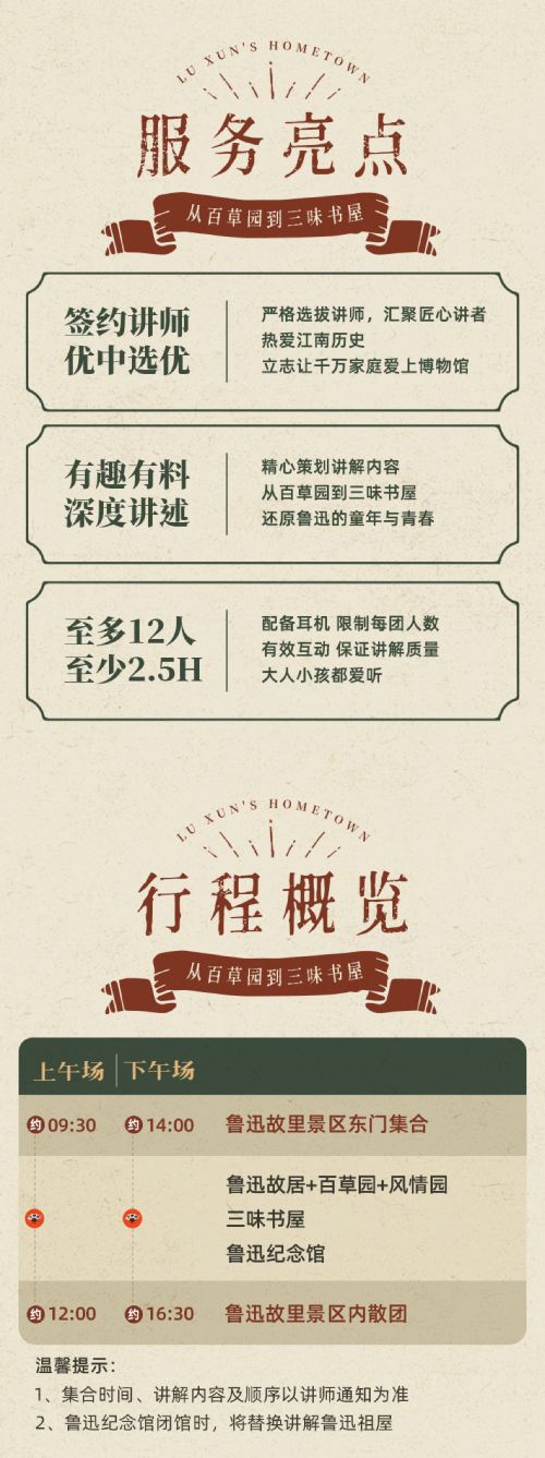 1、 该行程【不含票版】不含绍兴故里门票预约,请自行预约