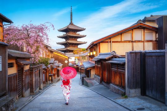 ▲ 蜿蜒于清水寺山脚的二三年坂,保留着完整的江户时代街景:低矮木屋、格子窗棂、暖帘飘动,石板路随山势起伏,仿佛一步踏回百年前的京都。