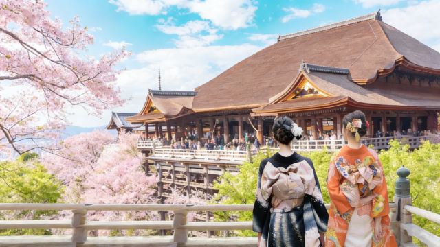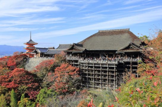 ▲ 始建于778年的清水寺,依音羽山悬崖而建,其标志性的“清水舞台”由139根榉木支柱支撑,无一钉一铆,堪称日本木构建筑的奇迹。