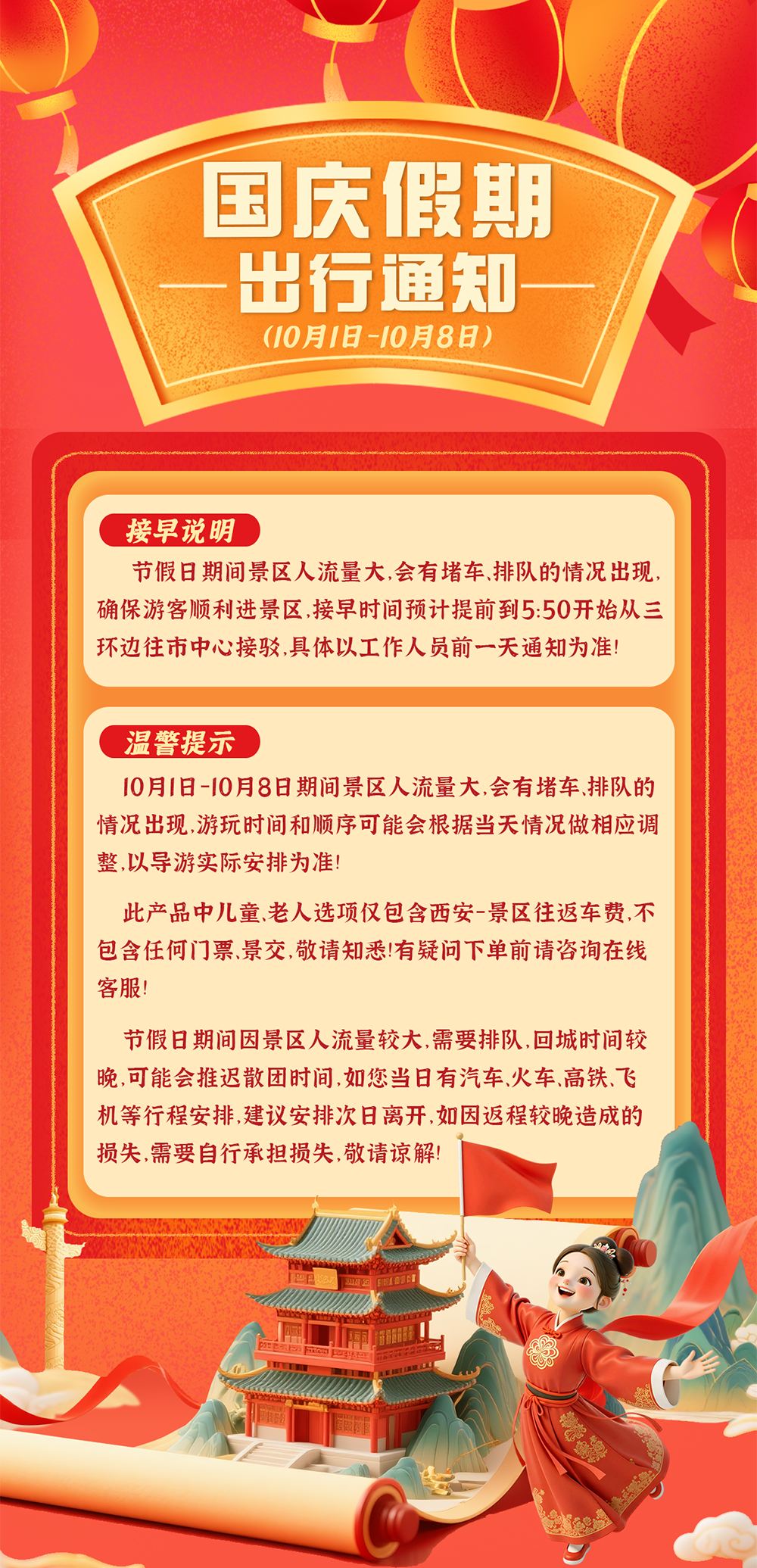 ②此产品中儿童、老人选项仅包含西安-景区往返车费,不包含任何门票、景交,敬请知悉!