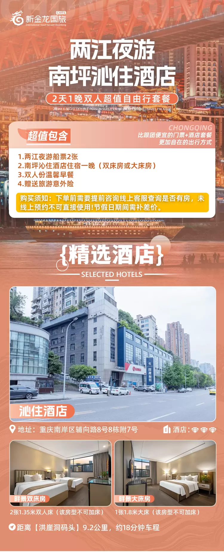 【酒店套餐】解放碑美居/南坪沁住/观音桥桔子酒店2天1晚+两江游