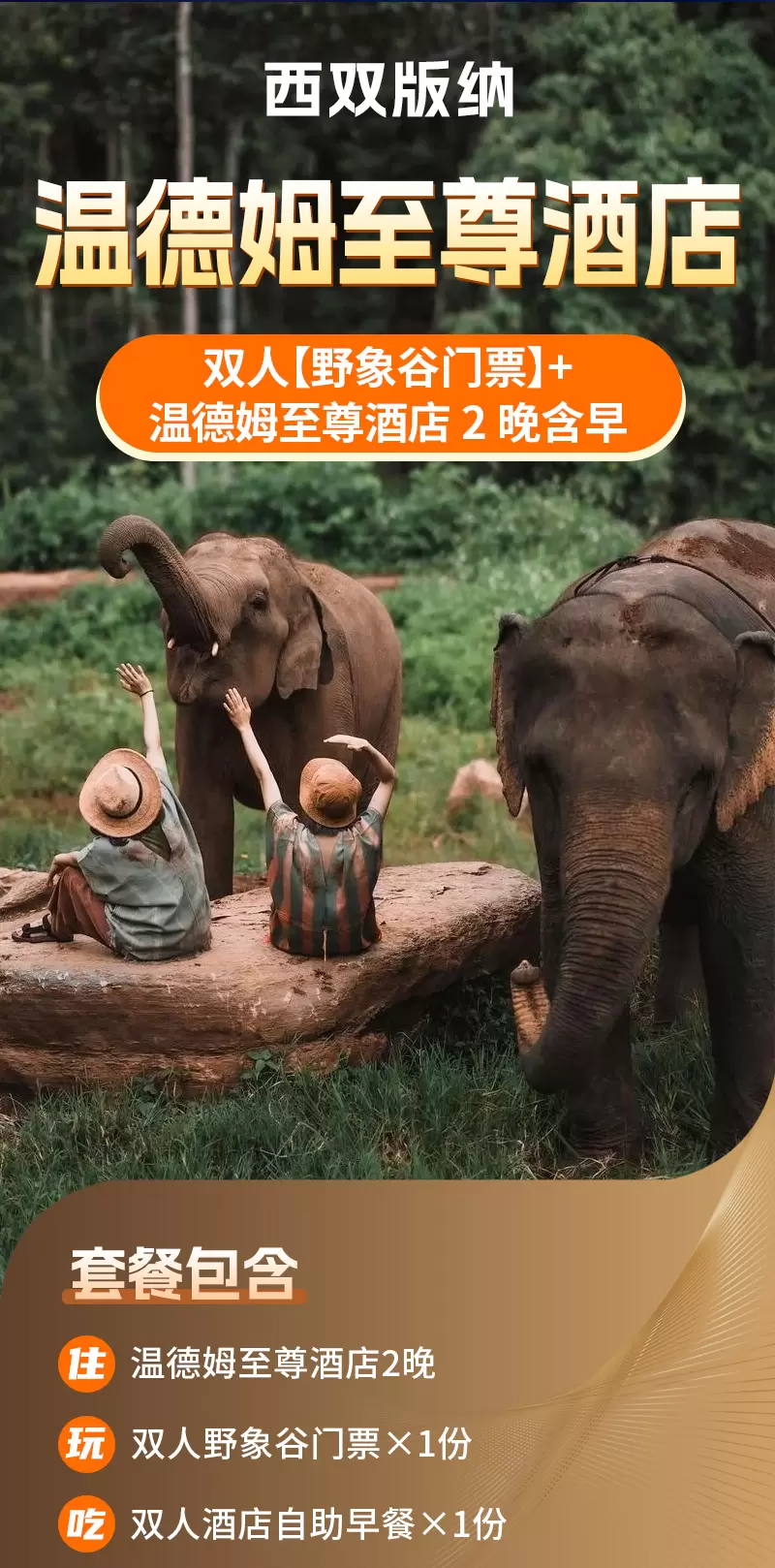 【酒店套餐】3天2晚版纳温德姆至尊酒店+双人野象谷门票+酒店早餐