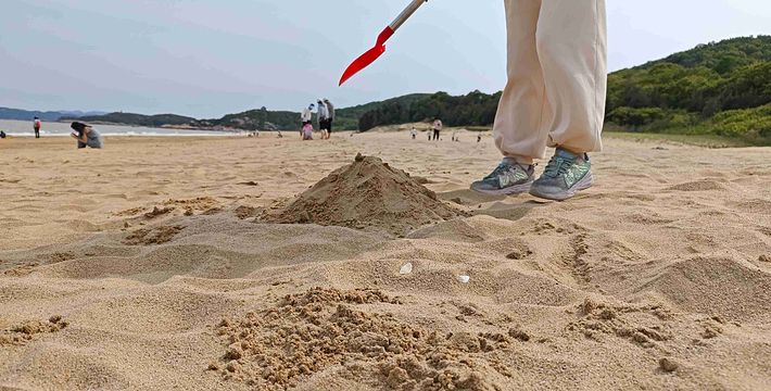 沙色如金,纯净松软,宽坦软美,犹如锦茵设席,人行其上,不濡不陷。