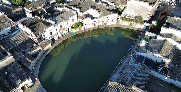 南湖位于宏村南首,湖面倒影浮光,水天一色,远峰近宅,跌落湖中,动静相宜,更显明丽。