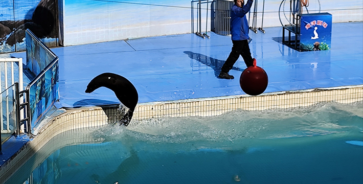 聪明的海狮,憨态可掬的海豹,它们逗趣的表演让海洋馆处的笑声弥漫整个动物园。