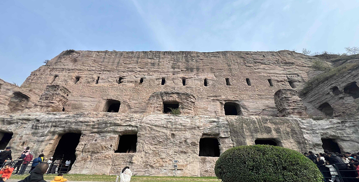 云冈石窟位于中国山西省大同市城西约16公里的武州(周)山南麓、武州川的北岸,地理位置为东经113º20’,北纬40º04’。石窟依山开凿,规模恢弘、气势雄浑,东西绵延约1公里,窟区自东而西依自然山势分为东、中、西三区。现存主要洞窟45个,附属洞窟209个,雕刻面积达18000余平方米17米2厘米,佛龛约计1100多个,大小造像51000余尊。云冈石窟距今已有1500年的历史,是佛教艺术东传中国后,是公元5世纪中西文化融合的历史丰碑。1961年3月被国务院公布为首批全国重点文物保护单位;2001年12月被联合国教科文组织批准列入“世界文化遗产”名录;2007年5月成为国家首批5A级旅游景区。云冈石窟原名武州(周)山石窟寺,明代改称云冈石窟。北魏地理学家郦道元《水经注·灅水》记载:“武州川水又东南流,水侧有石,祗洹舍并诸窟室,比丘尼所居也。其水又东转迳灵岩南,凿石开山,因岩结构,真容巨壮,世法所稀,山堂水殿,烟寺相望,林渊锦镜,缀目新眺”。作为北魏建都平城(今山西大同)时期的大型石窟寺文化遗存,是从北魏文成帝复法启开凿之始,到北魏正光年间终结,大致历经了近70年之久,石窟艺术内容丰富,雕饰精美,是当时统治北中国的北魏皇室集中全国技艺和人力、物力所雕凿,是由一代代、一批批的能工巧匠创造出的一座佛国圣殿,它以壮丽的典型皇家风范造像而异于其他早期石窟,展现的佛教文化艺术涉及到历史、建筑、音乐等多方面内容。它是东方石雕艺术的精魂,也是中西文化融合的典范,亦代表着公元5-6,在中国乃至世界艺术史上占有重要地位,与敦煌莫高窟、洛阳龙门石窟并称为中国三大石窟,亦与印度阿旃陀石窟、阿富汗巴米扬石窟并称为世界三大石雕艺术宝库。