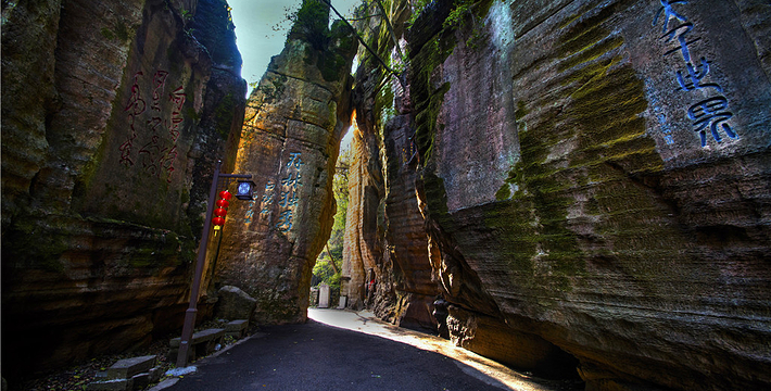 不二门景区是猛洞河风景名胜区的北大门。这里石林、温泉、寺庙、古木、石刻、历史文物众多,令游人留恋忘返。这里真不愧为清朝探花景元在石壁上题刻的“到此人皆佛,同来我亦仙”的人间仙境。