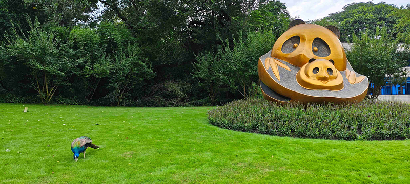 除了熊猫,这里还有黑颈鹤、白鹳和白天鹅、黑天鹅、雁、鸳鸯及孔雀等动物,俨然是个小型动物园。