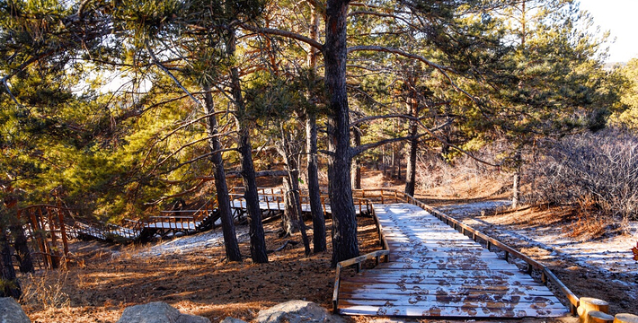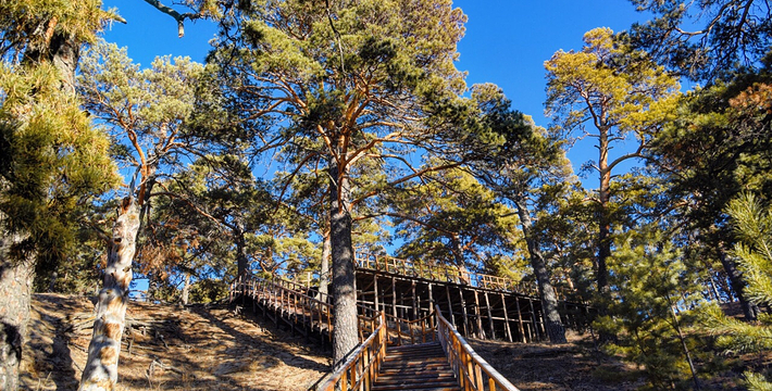 海拉尔国家森林公园位于内蒙古呼伦贝尔盟海拉尔市区西部,在清朝曾被列为呼伦贝尔八景之一,总面积21万亩。樟子松又称海拉尔松,属于欧洲赤松的一个变种,是中国北方珍贵的针叶树种之一,被誉为“绿色皇后”。树体高大粗壮,耐寒抗旱。因此,无论是它的生存特点,还是它的生物形态,都具有极强的观赏价值。